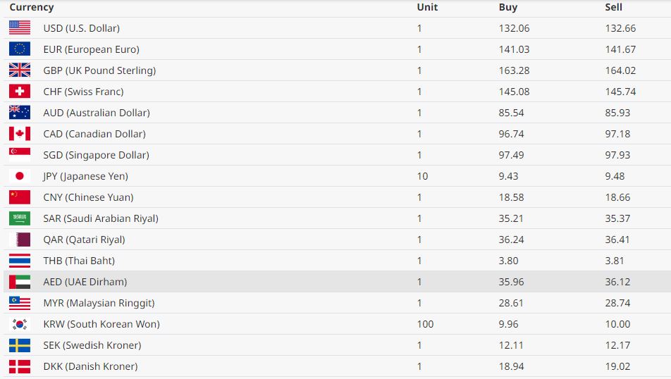 अमेरिकी डलरको खरिद दर १३२ रूपैयाँ ६ पैसा बिक्री दर १३२ रूपैयाँ ६६ पैसा रहेको छ । युरो एकको खरिद दर १४१ रूपैयाँ ३ पैसा बिक्री दर १४१ रूपैयाँ ६७ पैसा रहेको छ।