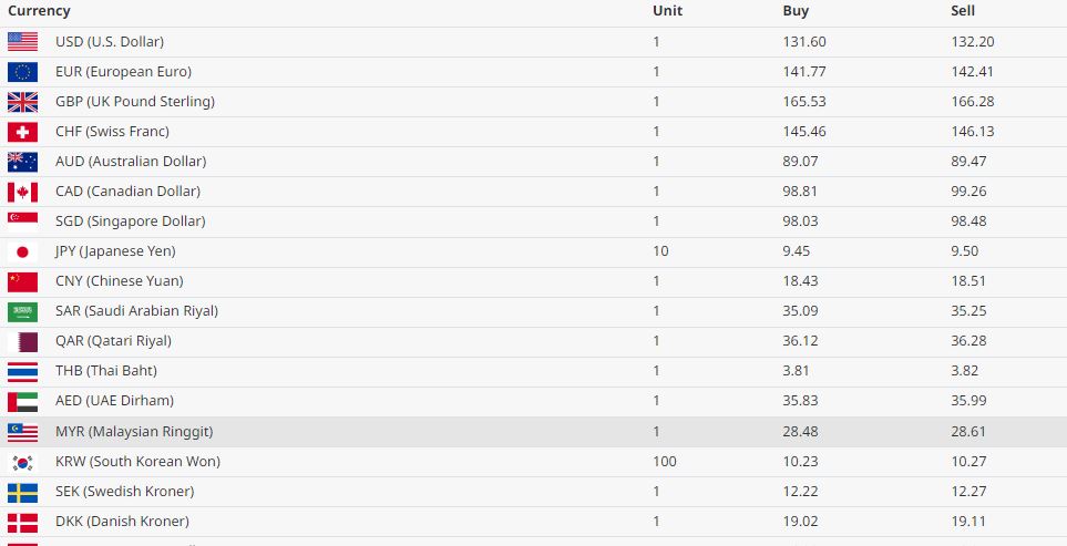 अमेरिकी डलरको खरिद दर १३१ रूपैयाँ ६० पैसा बिक्री दर १३२ रूपैयाँ २० पैसा रहेको छ। युरो एकको खरिद दर १४१ रूपैयाँ ७७ पैसा बिक्री दर १४२ रूपैयाँ ४१ पैसा रहेको छ।