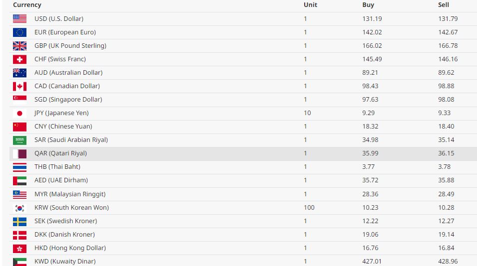 कतारी रियालको मूल्य एकको खरिद दर ३५ रूपैयाँ ९९ पैसा बिक्री दर ३६ रूपैयाँ १५ पैसा रहेको छ ।