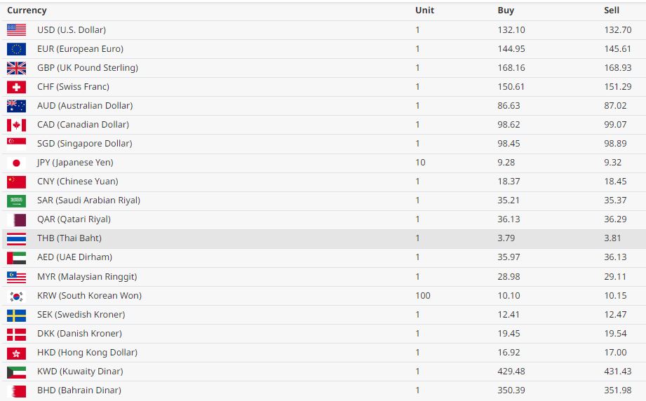 बेलायती पाउण्ड एकको खरिद दर १६८ रूपैयाँ १६ पैसा बिक्री दर १६८ रूपैयाँ ९३ पैसा रहेको छ । कतारी रियालको मूल्य एकको खरिद दर ३६ रूपैयाँ १३ पैसा बिक्री दर ३६ रूपैयाँ २९ पैसा रहेको छ ।