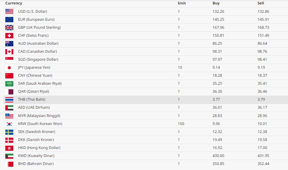 अमेरिकी डलरको खरिद दर १३२ रूपैयाँ २६ पैसा बिक्री दर १३२ रूपैयाँ ८६ पैसा रहेको छ । युरो एकको खरिद दर १४५ रूपैयाँ २५ पैसा बिक्री दर १४५ रूपैयाँ ९१ पैसा रहेको छ।