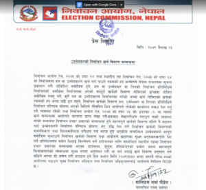 आयोगले आज विज्ञप्ति जारी गरी ऐनको दफा २५ को उपदफा (२) मा त्यस्तो खर्च सम्बन्धमा आयोगले मान्यता प्राप्त लेखा परीक्षकबाट लेखापरीक्षण गराउन सक्ने व्यवस्था रहेको सन्दर्भमा निर्वाचन प्रचार प्रसारको सम्बन्धमा हुने महत्वपूर्ण खर्चको विवरण पहिले नै सङ्कलन गर्दा उम्मेदवारले निर्वाचन परिणाम घोषणा भएपछि पेश गर्ने निर्वाचन खर्चको विवरणको वास्तविकता तथा विश्वसनीयता परीक्षण गर्न सहज हुने स्पष्ट पारेको छ ।
