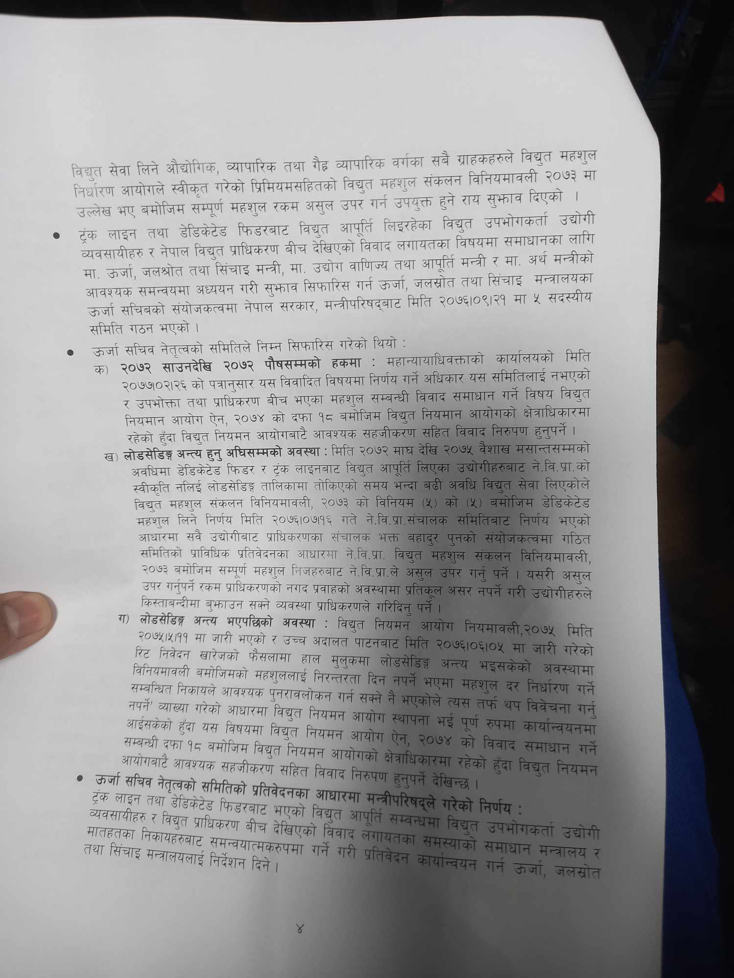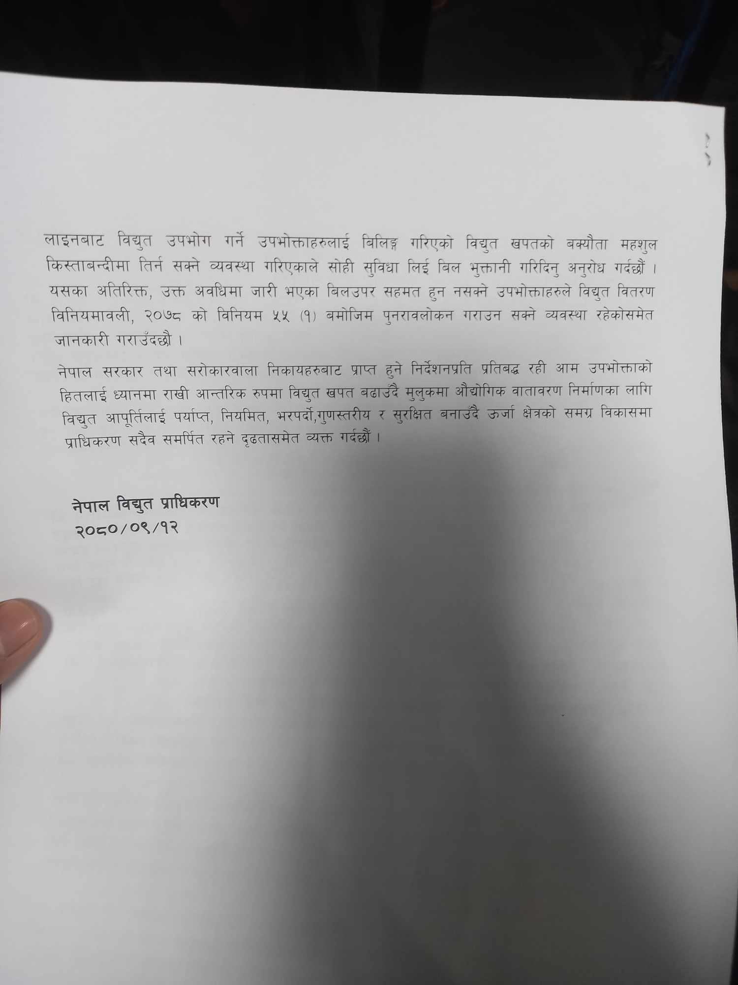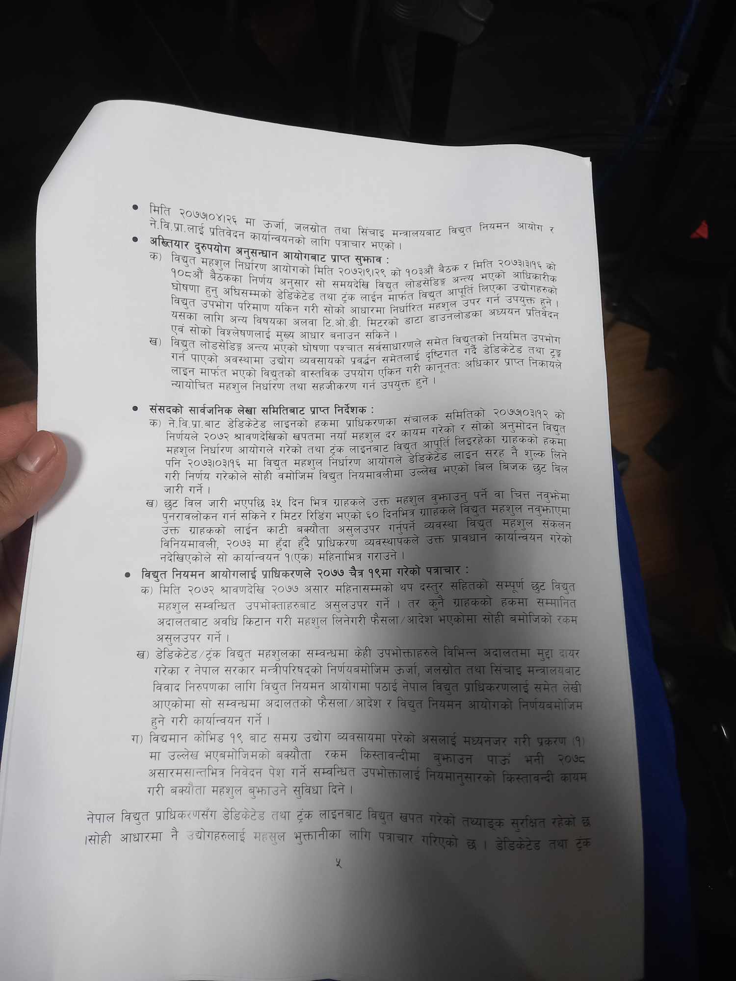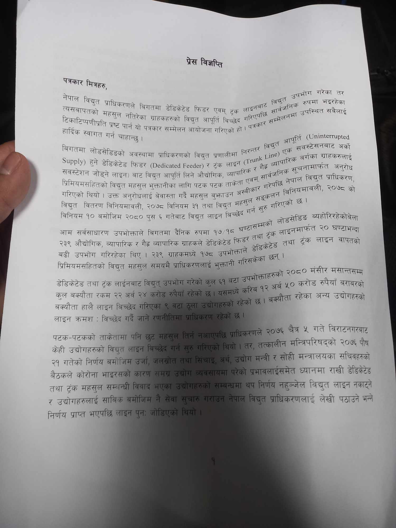 आम सर्वसाधारणले १७र१८ घण्टाको लोडसेडिङमा बसेका बेला २३९ औद्योगिक, व्यापारिक र गैरव्यापारिक ग्राहकले डेडिकेटेड फिडर तथा ट्रंक लाइनमार्फत २० घण्टा भन्दा बढी उपयोग गरेको समेत प्राधिकरणले दाबी गरेको छ ।