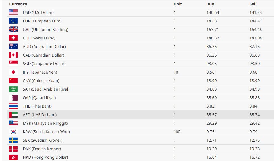 आज डलरको खरिद दर १३० रूपैयाँ ६३ पैसा र बिक्री दर १३१ रूपैयाँ २३ पैसा रहेको छ। युरो एकको खरिद दर १४३ रूपैयाँ ८१ पैसा र बिक्री दर १४४ रूपैयाँ ४७ पैसा रहेको छ।