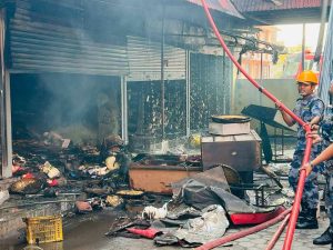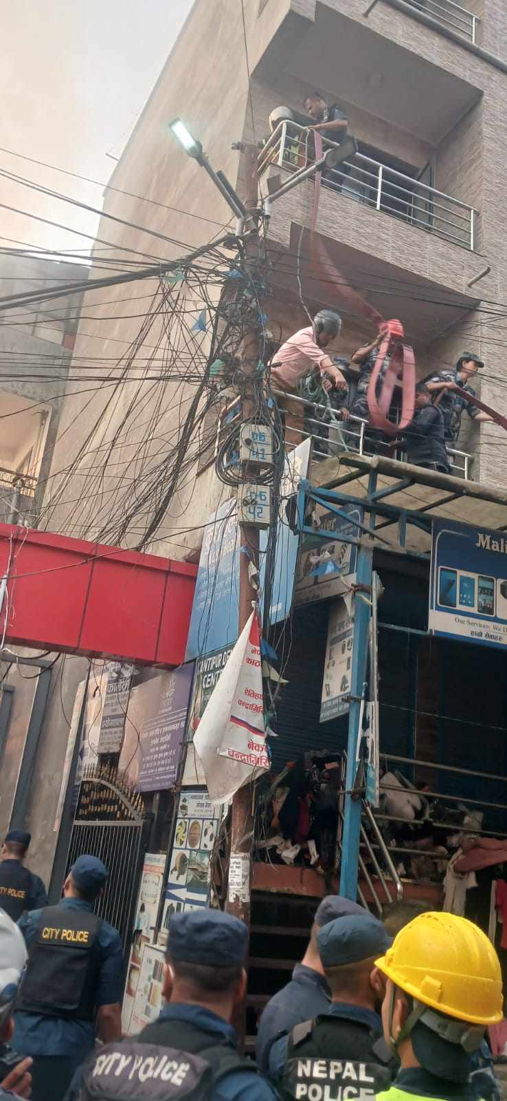 चारतले आरआर कम्पलेक्सको भुइँतलामा रहेको कपडाको गोदाममा अचानक आगलागी भएको हो । विद्युत् सर्ट भएर आगो लागेको हुन सक्ने प्रारम्भिक अनुमान छ ।