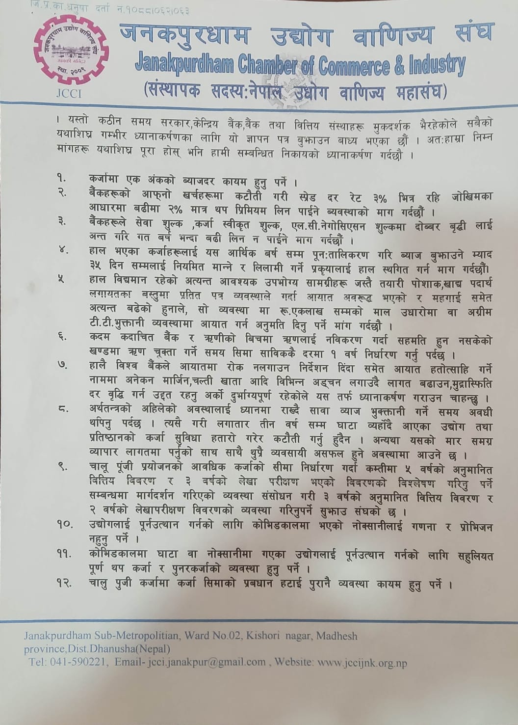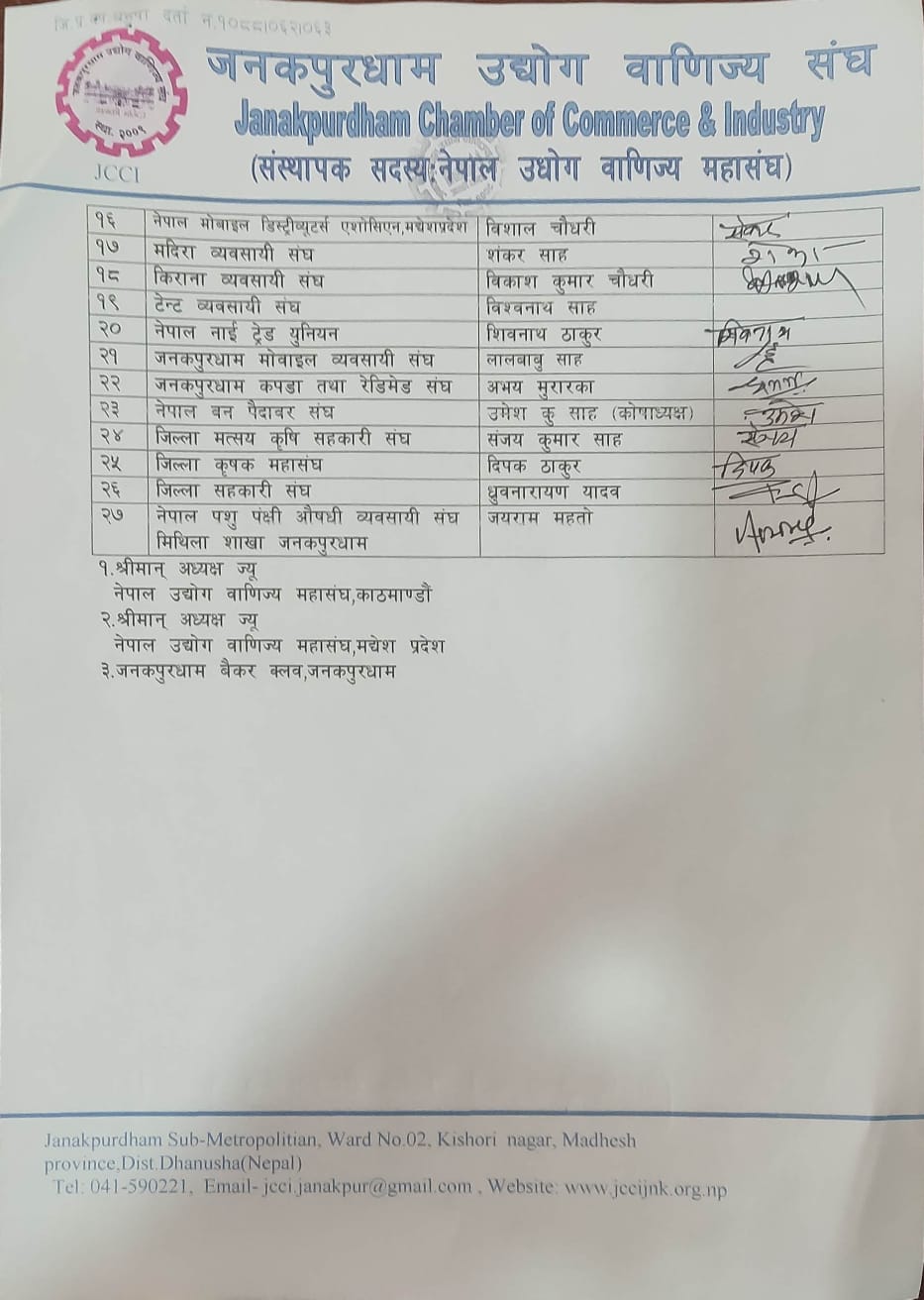 यसरी महासंघले नै आन्दोलन स्थगित गरेको समयमा केही जिल्ला/नगर तथा वस्तुगत संघहरुले भने आन्दोलनका कार्यक्रमम जारी राखेका छन् । बिहिबार विहानै केही जिल्ला/नगर तथा बस्तुगत संघहरुले संयुक्तरुपमा आन्दोलन नै गरे । जनकपुरधाम उद्योग वाणिज्य संघकाे नेतृत्वमा २३ वटा संघहरुले बिहिबार जिल्ला प्रशासन कार्यलय र नेपाल राष्ट्र बैंकको क्षेत्रीय कार्यलय जनकपुरमा ज्ञापन पत्र बुझाए । उनीहरूले जिल्ला प्रशासन कार्यलयमार्फत अर्थमन्त्री र राष्ट्र बैंक मार्फत गभर्नरलाइ पत्र पठाएकाे जनाएका छन् ।