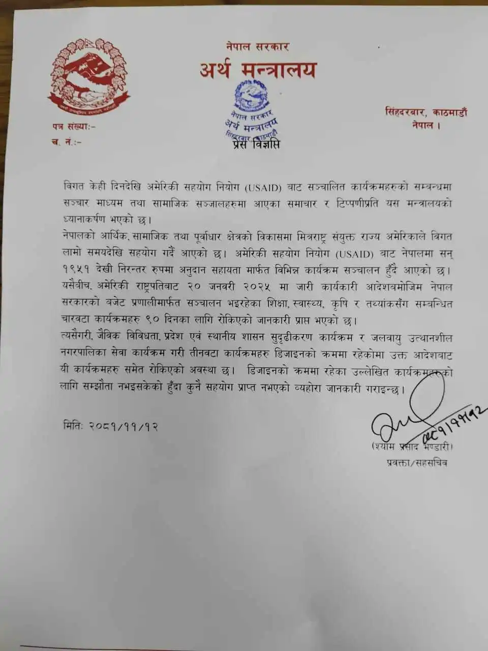 मन्त्रालयका अनुसार यी कार्यक्रम ९० दिनका लागि रोकिएका हुन् ।