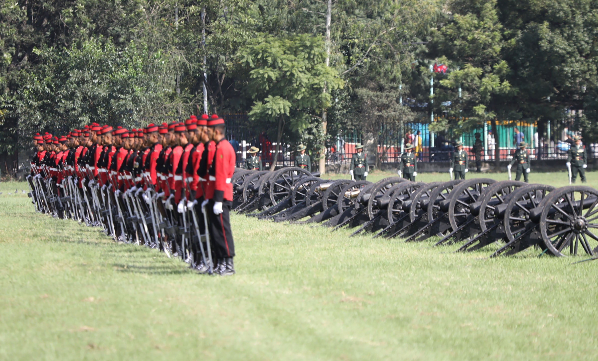काठमाडौँ । राष्ट्रपति रामचन्द्र पौडेलको प्रमुख आतिथ्यमा सैनिक मञ्च टुँडिखेलमा आज अपराह्न ‘फूलपाती बढाइँ समारोह–२०८१’ सम्पन्न गरिएको छ । समारोहमा नेपाली सेनाका परमाधिपति राष्ट्रपति पौडेलको सम्मानमा नेपाली सेनाले सलामी अर्पण गरेको थियो ।