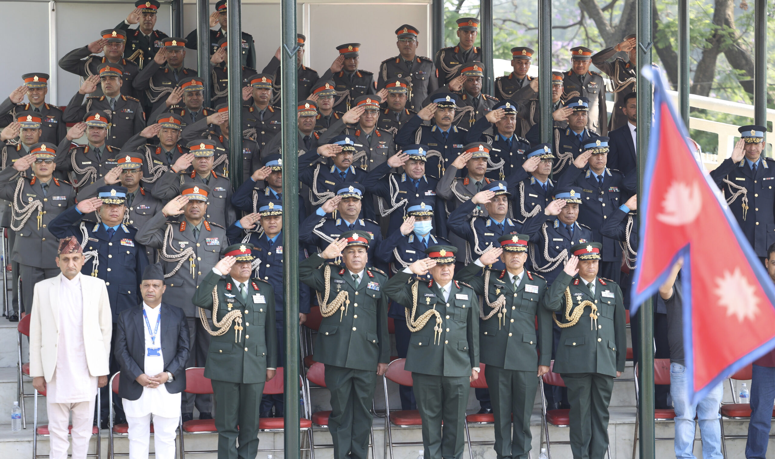 काठमाडौँ– सैनिक मञ्च टुँडिखेलमा विशेष समारोह आयोजना गरेर १६ औं गणतन्त्र दिवस मनाइएको छ।