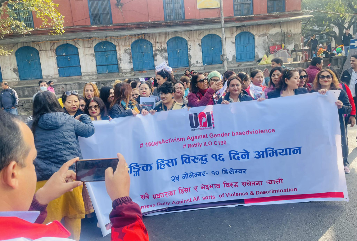 यसैबीच दुई करोड भन्दा धेरै श्रमिकहरूको प्रतिनिधित्व गर्ने विश्वव्यापी संघ यूएनआई ग्लोबल युनियनको नेपाल च्याप्टर यूएनआई नेपाल सम्पर्क परिषद्ले काठमाडौंमा सचेतना र्याली निकालेको छ । भद्रकालीमा भेला भएर विभिन्न प्ले–कार्डहरू र ब्यानरसहित निकालिएको र्याली रत्नपार्कस्थित शान्ति बाटिकामा पुगेर कोण सभामा परिणत भएको थियो ।