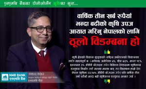 नेपालको प्रमुख पहिचान कृषिप्रधान देश हो । तर, स्वदेशमै उत्पादन हुन सक्ने कृषिजन्य वस्तुहरूमा समेत मुलुक परनिर्भर छ । भन्सार विभागको पछिल्लो तथ्याङ्क अनुसार चालू आर्थिक वर्षको ६ महिनामा मात्रै मुलुकमा एक खर्ब ३० अर्ब १८ करोड ६८ लाख ५८ हजार रूपैयाँ बराबरको कृषि उपज आयात भएको छ । अझ यो तथ्याङ्क अघिल्लो आर्थिक वर्षको … Continue reading ‘कृषिलाई आधुनिकीकरण, व्यवसायिकरण र वैज्ञानिकीकरण गर्न ‘सर्च’, ‘रि–सर्च’ अनिमात्रै लगानी आवश्यक छ’ (भिडिओ)