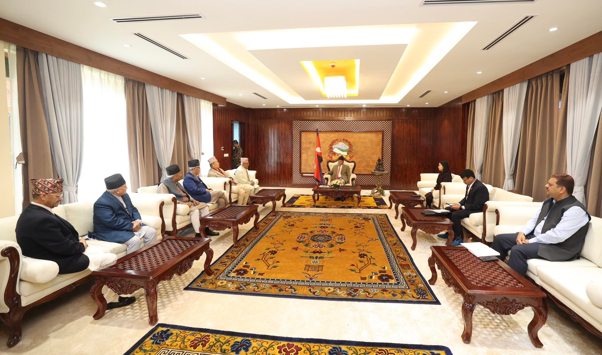 काठमाडौं । ७ वटै प्रदेशका प्रदेश प्रमुखहरुले प्रधानमन्त्री पुष्पकमल दाहाल (प्रचण्ड)सँग भेट गरेका छन्। प्रदेश प्रमुखहरुले प्रधानमन्त्रीको सरकारी निवास बालुवाटारमा प्रधानमन्त्री प्रचण्डसँग भेट गरेका हुन्।