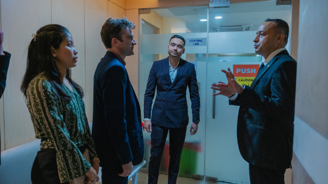 यो भ्रमण टोलीमा अल्फा बीटा ग्रुपका सीईओ द्विराज शर्मासहित पूर्वाञ्चल विश्वविद्यालयका उपकुलपति डा बिजु थपलिया, काठमाडौं युनिभर्सिटीका डीन प्राडा मनिष पोखरेल, आईओईका सिभिल विभाग प्रमुख गोकर्ण बहादुर मोत्रा, युलेन्स स्कुलका प्रिन्सिपल मेडिन बहादुर लामिछाने, ग्लोबल कलेज अफ म्यानेजमेन्टका प्रिन्सिपल अम्बादत्त जोशी, प्रिमियर स्कुलकी एकेडेमिक डाइरेक्टर प्रविना थापा, ब्रिटिश स्कुलका हेड अफ सेकेण्डरी क्रिष्टोफर ड्रेपर, ट्रिनिटी कलेजका प्रशासन प्रमुख अम्बिर थापा, प्रिमियर स्कुलका लागि विश्वविद्यालयका मार्गदर्शन सल्लाहकार तथा शिक्षक विपिन शर्मा बराल, रातो बंगला स्कुलकी कन्सुलर बिल्कीस बानु, काठमाडौं वर्ल्ड स्कुलका सिनियर कोअर्डिनेटर प्रणव जोशी, अल्फा बीटा ग्लोबलका डाइरेक्टर अभि सापकोटा, अल्फा बीटा ग्लोबलकी डाइरेक्टर दिव्या शर्मा, अल्फा बीटा ग्रुपका आर्थिक सल्लाहकार माधव पोखरेल, प्राविधिक सल्लाहकार सिमोन दाहाल र असिस्टेन्ट मार्केटिङ म्यानेजर एलेन डंगोल समावेश छन् ।