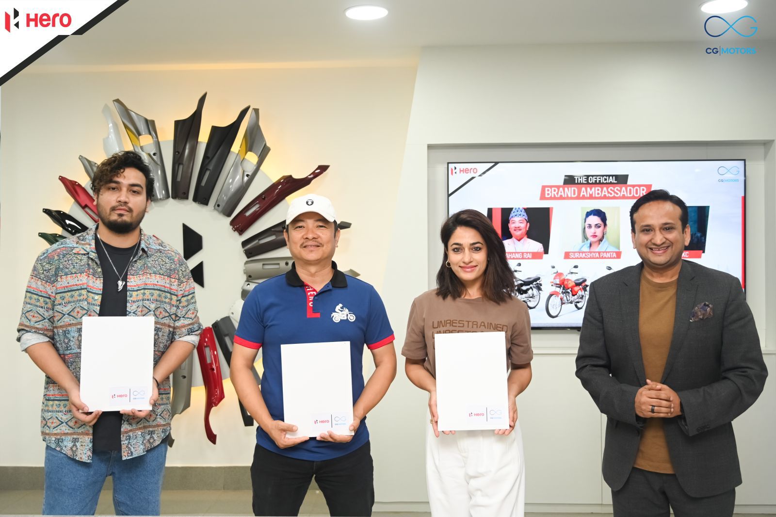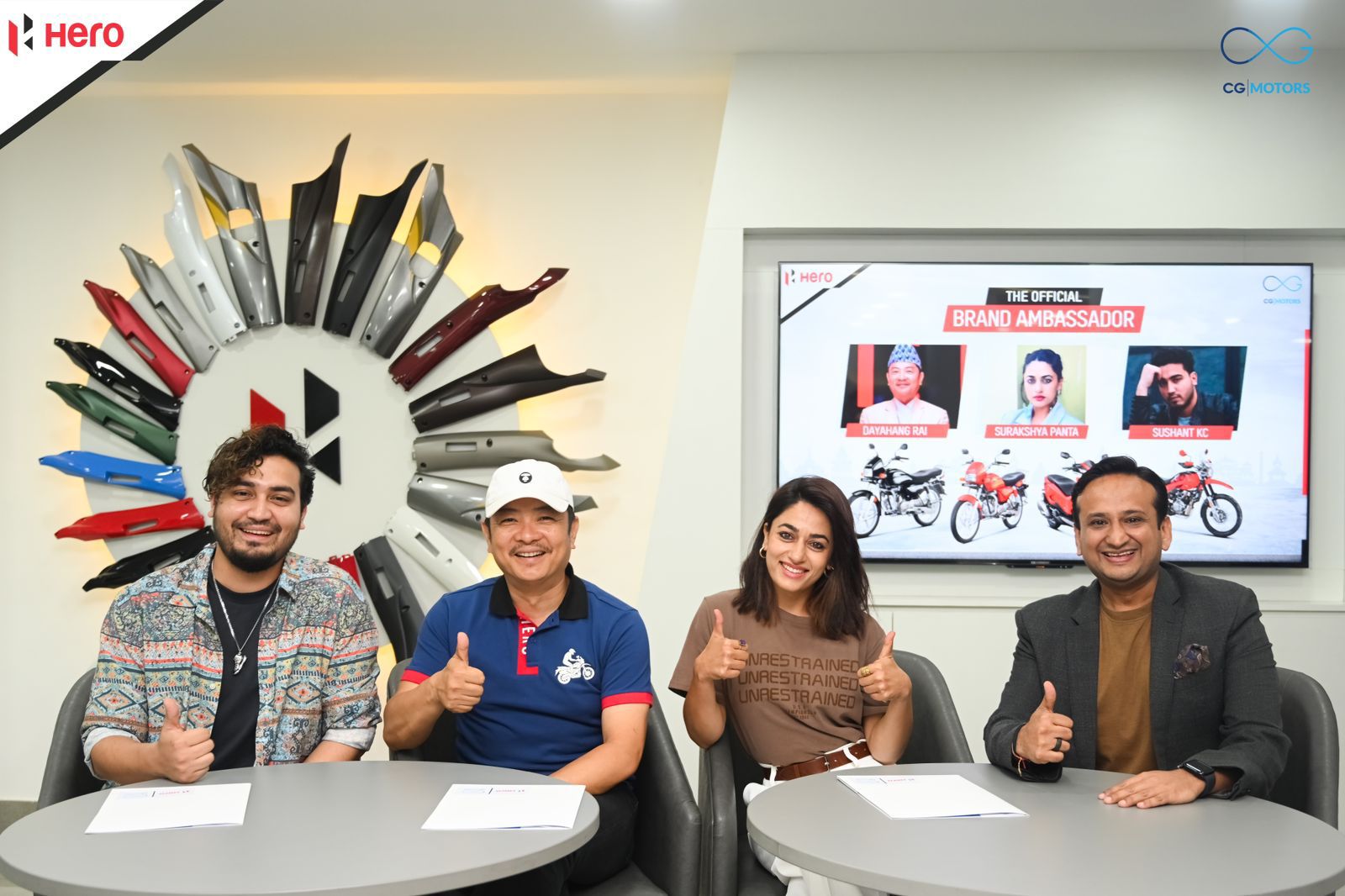 नक्सालस्थित स्टेट अफ दि आर्ट शोरूममा एक कार्यक्रम गरी सुशान्त केसी, सुरक्षा पन्त र दयाहाङ राईलाई नियुक्त ब्रान्ड एम्बेस्डर नियुक्त गरेको हो । सीजी मोटर्सको यो रणनीतिक कदमले हिरो ब्रान्डको उपस्थितिलाई नेपालमा अझै बलियो बनाउने लक्ष्य राखेको छ ।