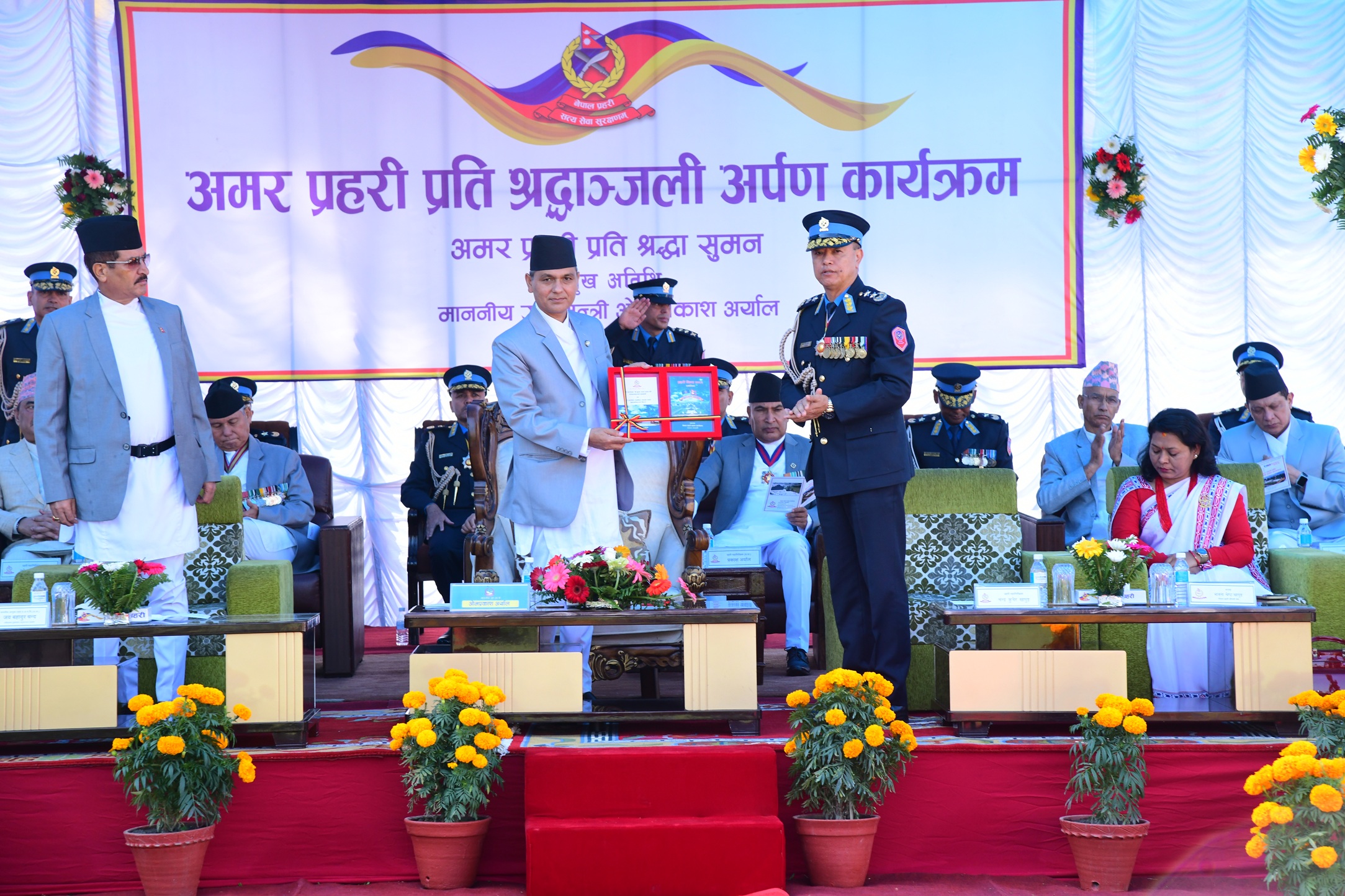 सो अवसरमा गृहमन्त्री अर्यालले नेपाल प्रहरी प्रधान कार्यालयस्थित अमर प्रहरी स्मारकमा पुष्पहार अर्पण गर्नुको साथै कर्तव्य पालनाको क्रममा वीरगति प्राप्त गर्ने अमर प्रहरीका आश्रित परिवारहरूलाई कदरपत्र प्रदान गरे । साथै उनले “प्रहरी दर्पण २०८२” को लोकार्पण एवम् नेपाल प्रहरीलाई नि:शुल्क जग्गा प्रदान गर्ने जग्गादाताहरूको नामावली तथा अमर प्रहरीसँग सम्बन्धित स्थापना भएका अक्षयकोषहरूको विवरण समेटिएको “प्रहरी स्मारिका, २०८२” को लोकार्पण समेत गरे ।