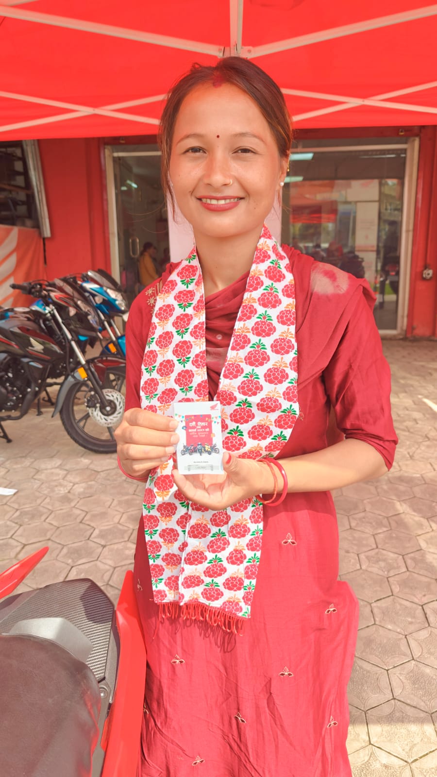 एकान्तकुनास्थित तिरूमाला मोटर्सबाट निश्चल घर्ती, चितवनको भरतपुरस्थित युनाइटेड मोटर्स प्रालिबाट प्रतिमा भण्डारी, वालिङस्थित आस्था ट्रेडर्सबाट सन्तोष सुवेदी र महेन्द्रनगरस्थित केडी अटोमोबाइल्सबाट शान्ति साउद योजनाअन्तर्गतको पुरस्कार जित्न सफल भएका हुन् ।