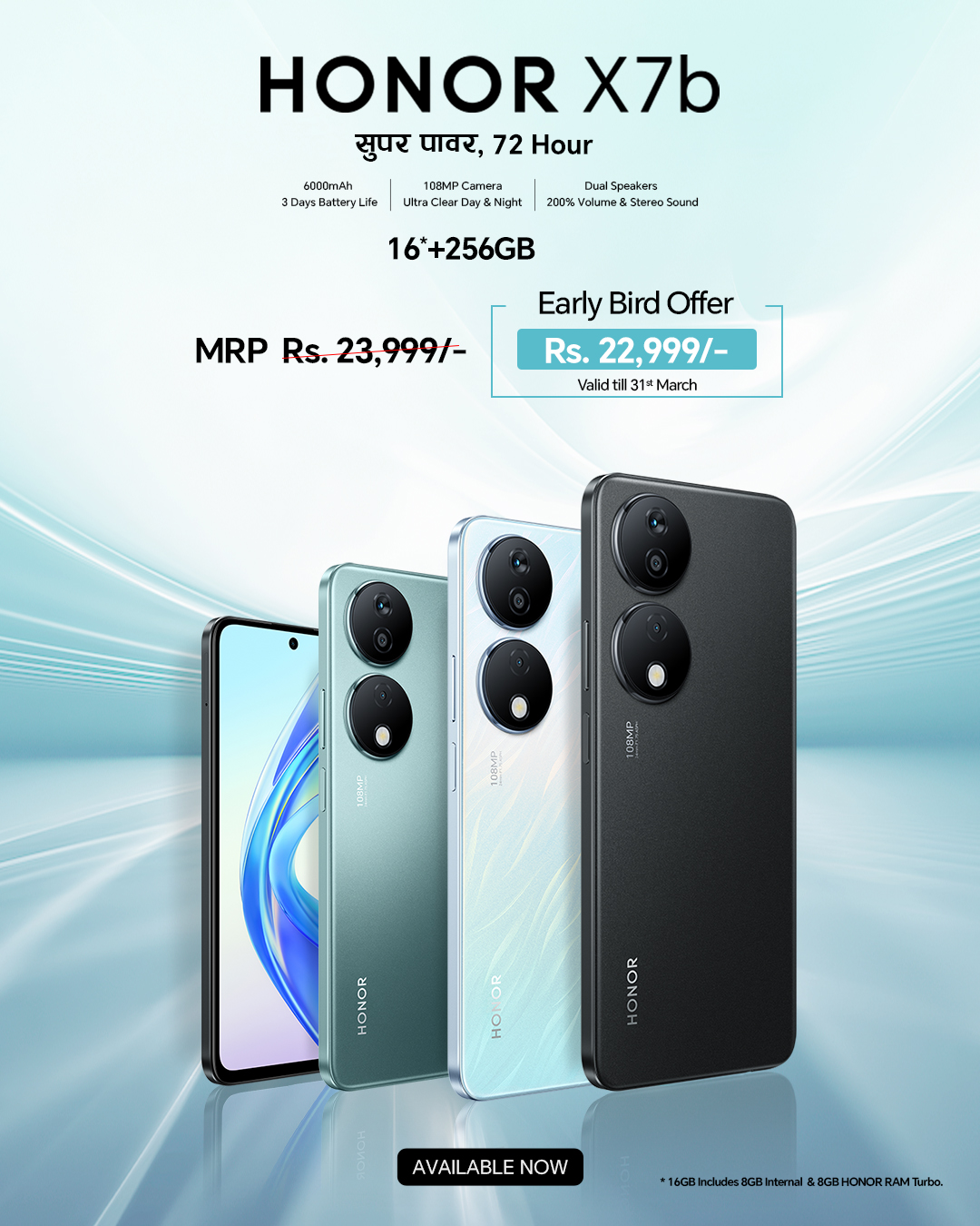 यसमा ६,००० एमएएच क्षमताको ब्याट्री, १०८ मेगापिक्सेल क्यामेरा र २५६ जीबी स्टोरेज रहेको छ । यसको मूल्य २३ हजार ९९९ रुपैयाँ रहेको छ ।