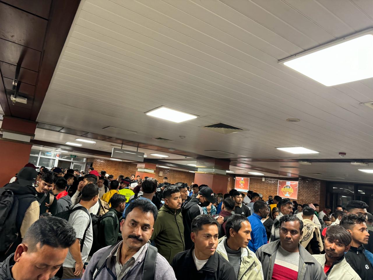 अध्यागमनको ‘सिस्टम डाउन’ हुँदा १० बजेकाे विमानकाे यात्रुकाे अझै जाँच पास हुन सकेको छैन ।