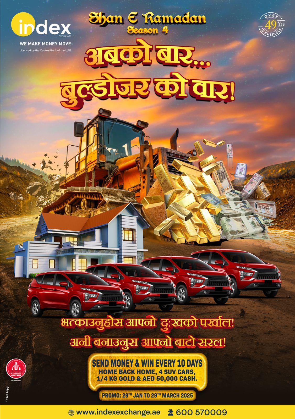 काठमाडौं । हरेक वर्षझैं यस वर्ष पनि इंडेक्स एक्सचेन्जले आफ्ना ग्राहकहरूका लागि भाग्य बदल्ने अफर ल्याएको छ। इंडेक्स एक्सचेन्जले रमदानको पावन महिनालाई विशेष बनाउन, शान ए रमदान सिजन चार अन्तर्गत यस बार, बुल्डोजरको वार भन्ने नारा सहित एक विशेष प्रवर्द्धन सुरु गरेको हो । यो योजना मार्च २९, २०२५ सम्म लागू हुने कंपनीले जनाएको छ।