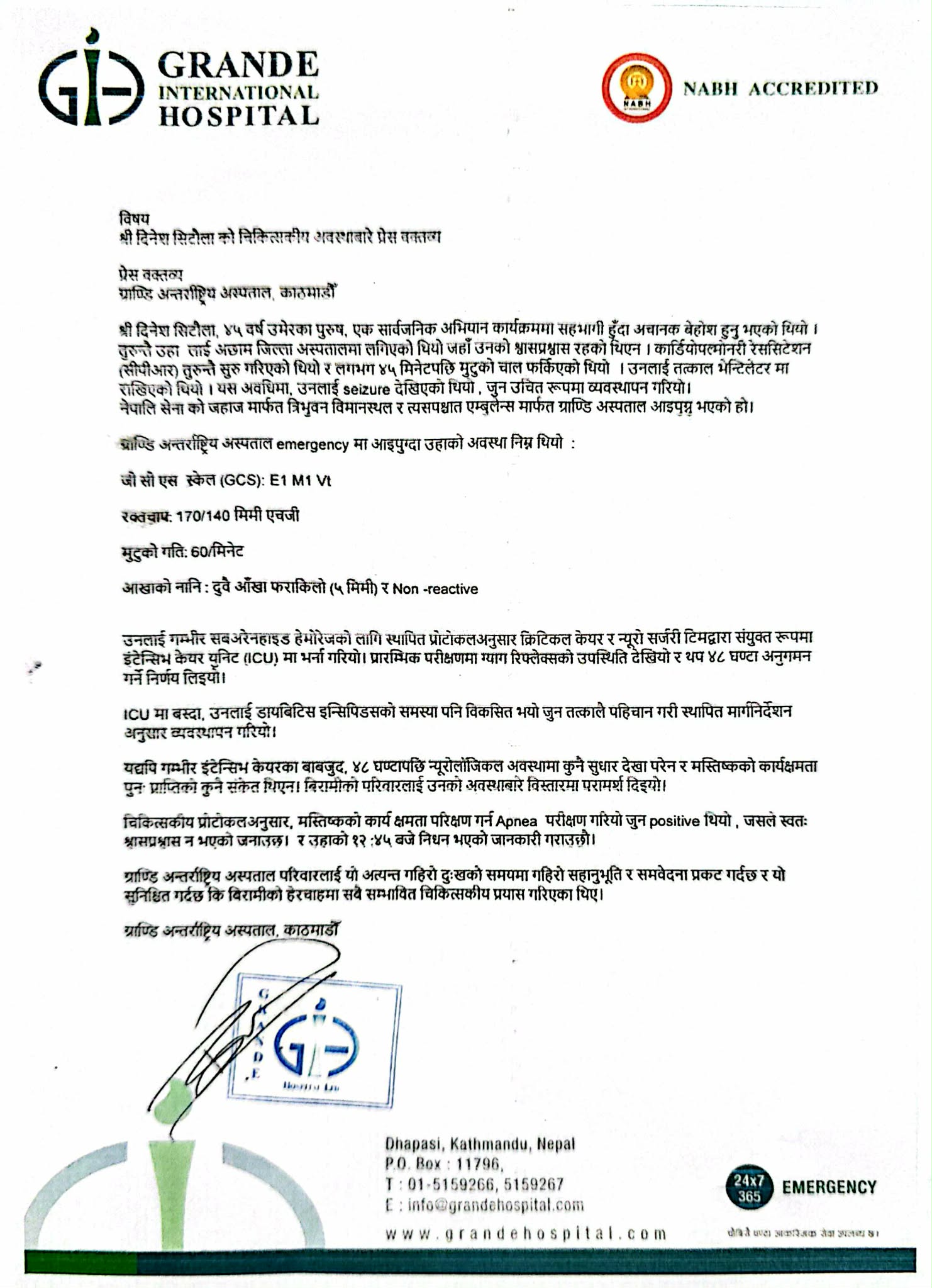 काठमाडौं । पत्रकार दिनेश सिटौलाको निधन भएको छ । उनी एन्यूरिज्म रप्चर (ब्रेन ह्यामरेजको एक रुप) बाट पीडित थिए ।