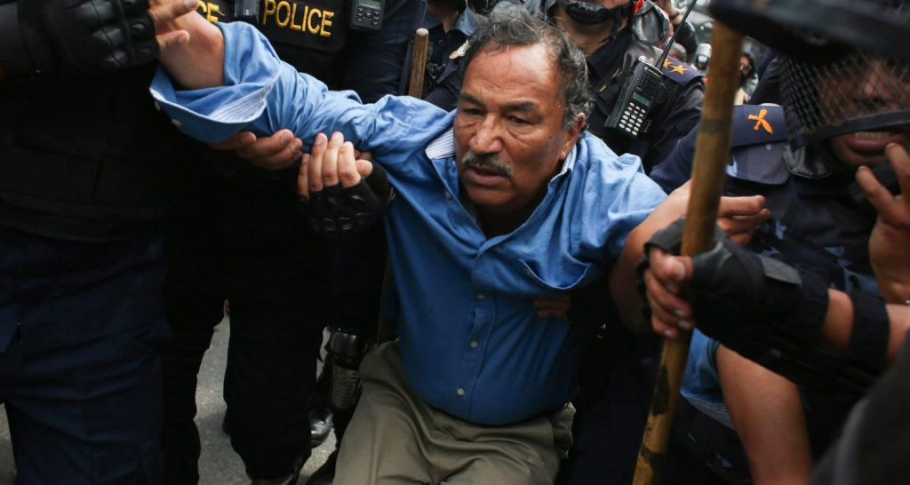 काठमाडौं । राप्रपा नेपालका अध्यक्ष कमल थापा पक्राउ परेका छन् ।राजसंस्था र हिन्दुराष्ट्र पुनर्स्थापनाको पक्षमा आज आइतबार नक्सालस्थित नारायणचौरमा भएको प्रदर्शनका क्रममा प्रहरीले उनलाई पक्राउ गरेको हो ।थापासहित पाँच जनालाई नियन्त्रणमा लिइएको जिल्ला प्रहरी परिसर, काठमाडौंका प्रवक्ता एसपी अपिलराज बोहराले जानकारी दिए । उनीहरूलाई अहिले भद्रकालीस्थित परिसरको हिरासतमा राखिएको छ ।एसपी बोहराका अनुसार प्रदर्शनस्थल नारायणचौरबाट … Continue reading किन पक्राउ परे कमल थापा ?