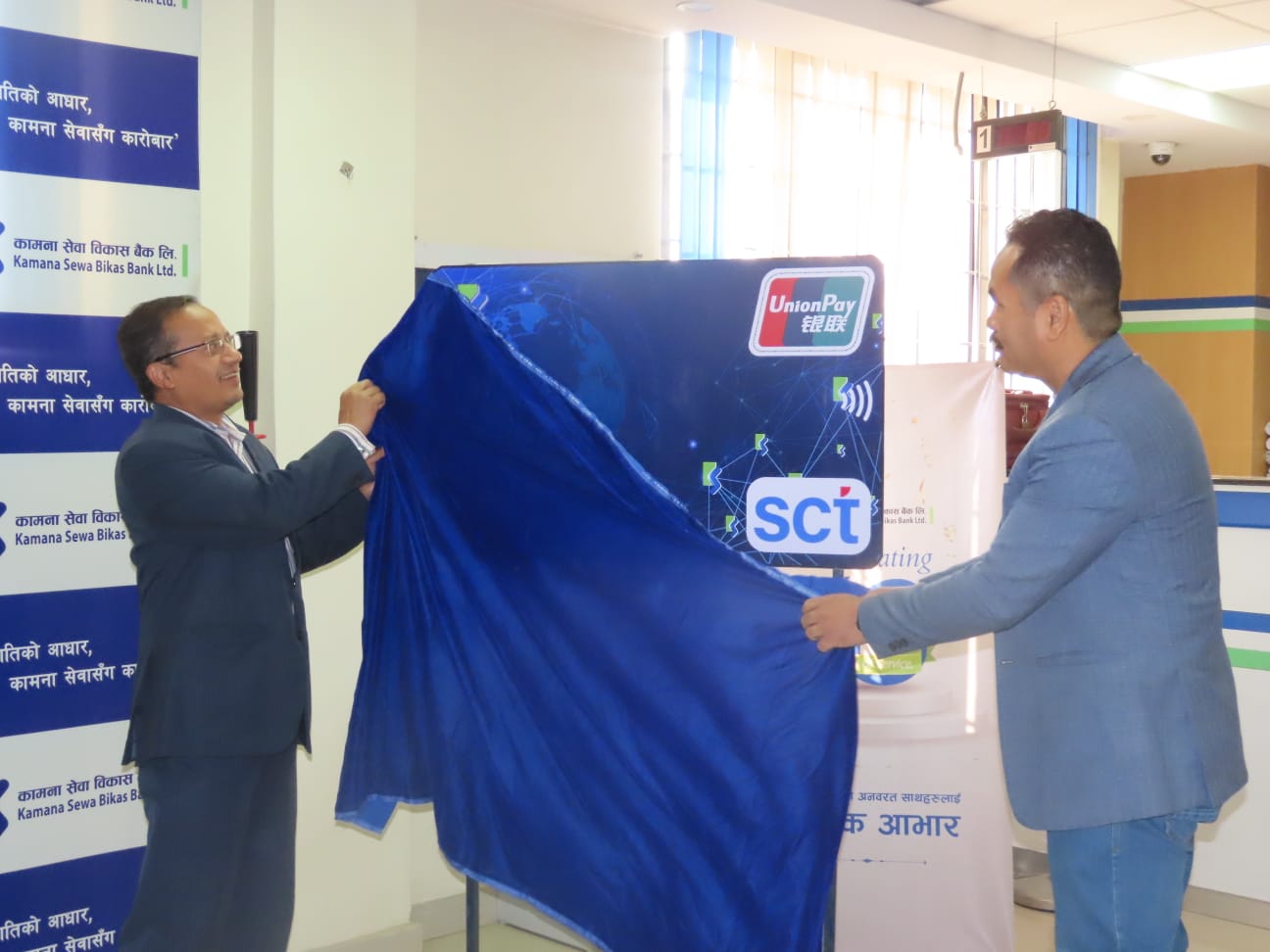 बैंकका नायव महाप्रबन्धक लाल बहादुर थिङ्ग र स्मार्टच्वाइस टेक्नोलोजिज लिमिटेडका प्रमुख कार्यकारी अधिकृत नारायण प्रकाश भुजुले संयुक्त रुपमा एससीटी–युपीआई डेबिट कार्ड सेवाको अनावरण गरि सेवा शुभारम्भ गरेका थिए ।