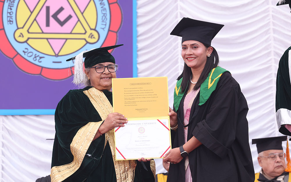 धुलिखेल । काभ्रेको धुलिखेलस्थित काठमाण्डौ विश्वविद्यालय (केयू) मा आज ३१औँ दीक्षान्त समारोह सम्पन्न भएको छ । पहिलो चरणमा कुल २ हजार २०९ विद्यार्थी दीक्षित भएका छन्, जस मध्ये १७ देशका १९६ विदेशी विद्यार्थी पनि रहेका छन् ।