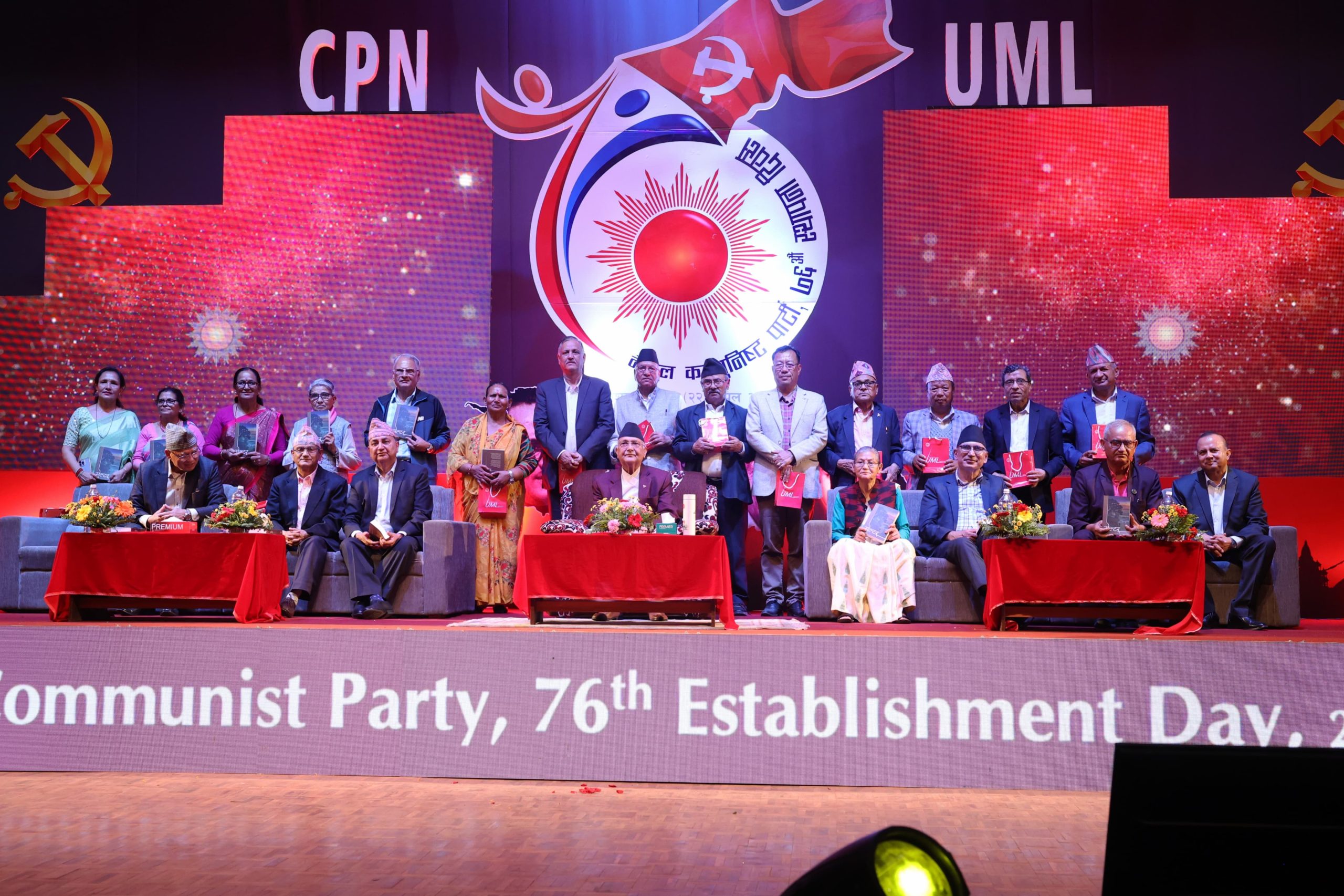 स्थापना दिवसका अवसरमा आज पार्टीद्वारा आयोजित कार्यक्रममा प्रधानमन्त्री ओलीले रत्नप्रसाद शर्मा न्यौपाने (मरणोपरान्त), लालबहादुर विश्वकर्मा (कञ्चनपुर), वाचस्पति देवकोटा (गोरखा), शान्ता मानवी (काठमाडौँ), सत्यनारायण मण्डल (सप्तरी) , शोभाराम बस्नेत (दाङ) र हरिचरण शिवाकोटी (झापा) लाई उक्त सम्मान प्रदान गरेका हुन् ।