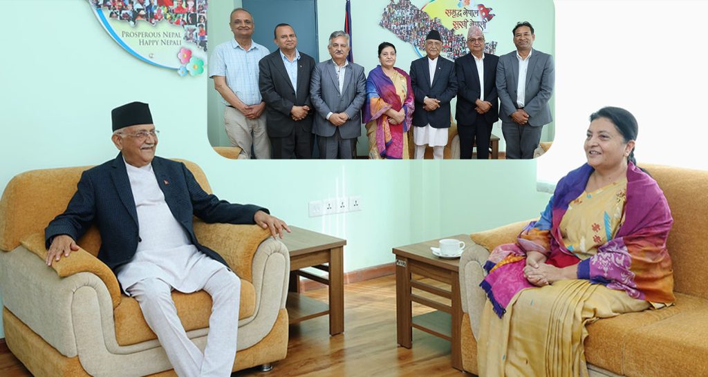 प्रधानमन्त्री ओली र पूर्वराष्ट्रपति भण्डारीबीच एमाले मुख्यालयमा भेटवार्ता