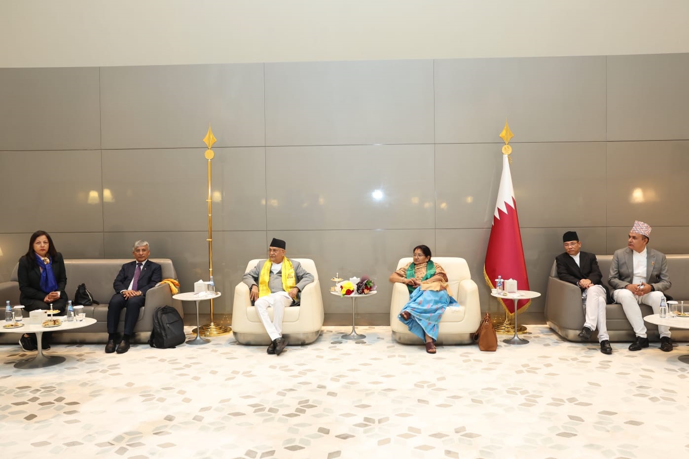प्रधानमन्त्री ओली स्थानीय समयअनुसार दिउँसो १:३५ बजे हमाद अन्तर्राष्ट्रिय विमानस्थल आइपुग्दा विमानस्थलको विशिष्ट कक्षमा कतारका लागि नेपाली दूतावासका कार्यवाहक राजदूत कुमार राई र दूतावासका वरिष्ठ अधिकारीहरूले स्वागत गरेका थिए ।