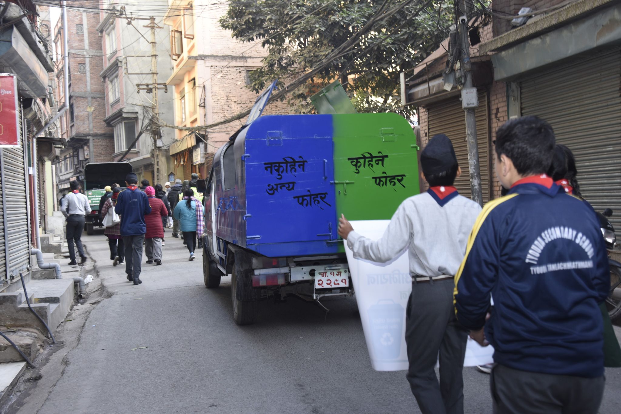 काठमाडौं । स्रोतमा वर्गीकरण गरिएको फोहोर छुट्टै सङ्कलन गर्न काठमाडौं महानगरपालिकाले रङ सङ्केतसहितको गाडी तयार पारेको छ ।