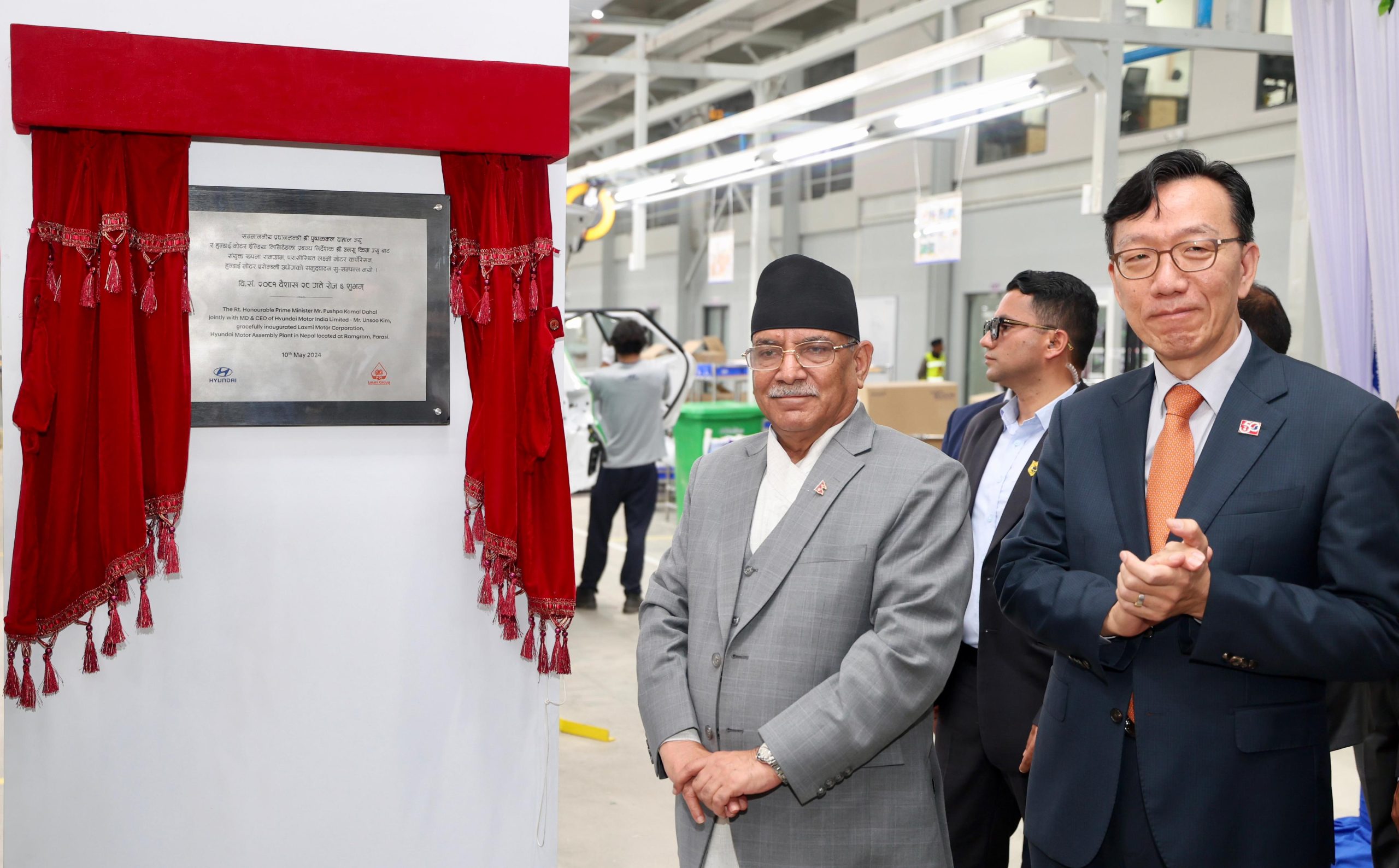 नवलपरासीको परासीस्थित हुन्डाइको एसेम्बलिङ प्लान्टको आज शुक्रबार प्रधानमन्त्री पुष्पकमल दाहाल ‘प्रचण्ड’ र हुन्डाई मोटर इन्डिया, लिमिटेडका प्रबन्ध निर्देशक उनसू किमले संयुक्त रूपमा उद्घाटन गरेका छन् ।