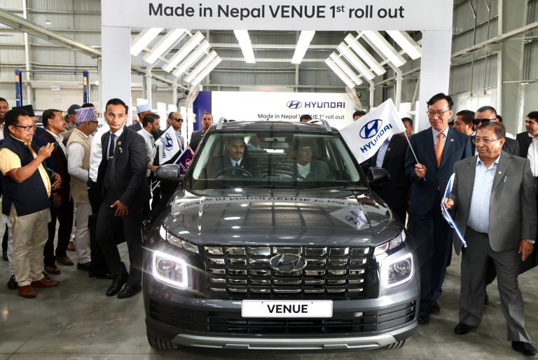 काठमाडौं । लक्ष्मी ग्रुपअन्तर्गतको लक्ष्मी मोटर कर्पोरेशनले नेपालमै हुन्डाइको गाडी एसेम्बल सुरू गरेको छ ।नवलपरासीको परासीस्थित हुन्डाइको एसेम्बलिङ प्लान्टको आज शुक्रबार प्रधानमन्त्री पुष्पकमल दाहाल ‘प्रचण्ड’ र हुन्डाई मोटर इन्डिया, लिमिटेडका प्रबन्ध निर्देशक उनसू किमले संयुक्त रूपमा उद्घाटन गरेका छन् ।प्लान्ट उद्घाटनसँगै लक्ष्मी ग्रुपले हुन्डाइको ‘भेन्यु’ मोडेलको कार सार्वजनिक गरेको छ । नवलपरासी पश्चिमको रामग्राम नगरपालिका–६ … Continue reading लक्ष्मी मोटर कर्पोरेशनद्वारा ‘हुन्डाई मोटर एसेम्बलिङ’ सुरू, ‘भेन्यु’ मोडेलको कार सार्वजनिक (फोटो फिचर)