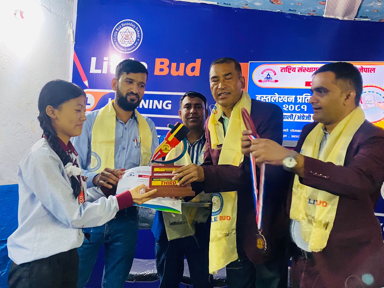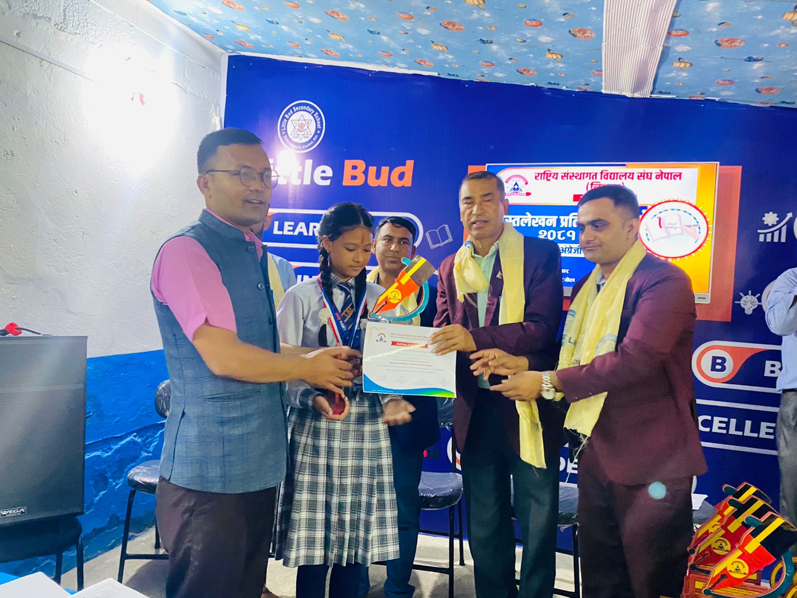 यस्तै, अंग्रेजीतर्फको प्रतिस्पर्धामा कक्षा ३ देखि ६ सम्मको अंग्रेजी ‘जुनियर’तर्फ लिटिल बड स्कुलकी छात्रा रेबिका तामाङले पहिलो स्थान हसिल गरेकी छिन् । यस्तै, इन्द्रावती स्कुलकी छात्रा स्नेहा ठाकुर दोस्रो र गोकर्णेश्वर लाइट एकेडेमीका छात्र सिद्धार्थ तामाङ तेस्रो भए ।