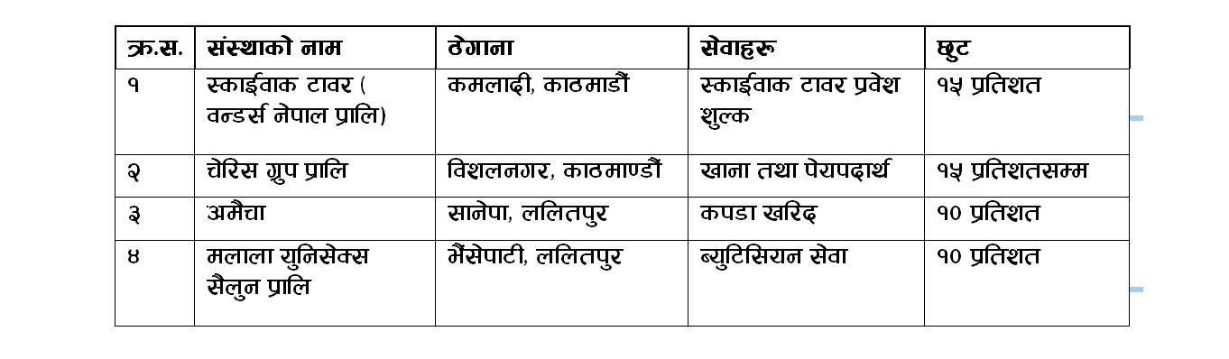 सम्झौतापश्चात महालक्ष्मी विकास बैंकका डेबिट अथवा क्रेडिट कार्ड तथा मोबाइल बैंकिङ प्रयोग गर्ने ग्राहकहरूले उक्त संस्थाहरूका विभिन्न सेवाहरूमा विशेष छुट प्राप्त गर्न सक्नेछन् ।