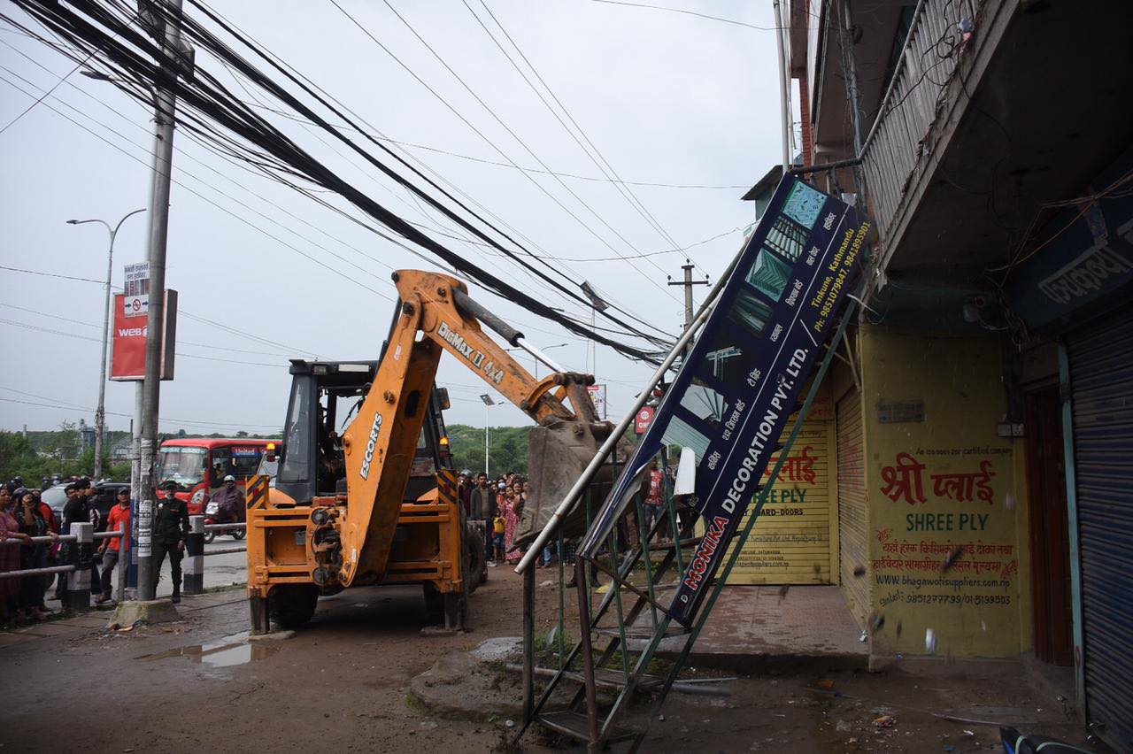 काठमाडौँ । काठमाडौँ महानगरपालिकाले तीनकुने कोटेश्वर खण्डमा रहेका अनधिकृत संरचना हटाउन सुरु गरेको छ ।