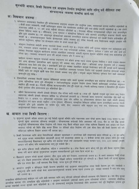 आधारभूत एवं मुख्य औद्योगिक कच्चा पदार्थको रुपमा रहेको सुनलाई परिमाणात्मक सीमा अन्तर्गत अत्यन्तै न्यून परिमाणमा पैठारी हुँदा व्यवसाय संचालनमा नै संकुचन आएकोले मागको अनुपातमा सहज, सरल र पारदर्शी किसिमले विकेन्द्रित रुपमा आपूर्तिको व्यवस्था मिलाइनु पर्ने माग रहेको छ ।
