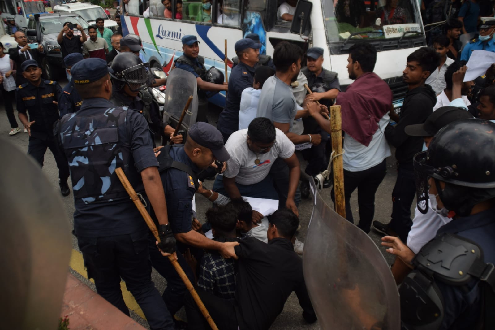 ठमाडौं। नागरिकताको माग गर्दै काठमाडौंको माइतीघरमा आन्दोलनरत सर्वसाधारणमाथि प्रहरीले बल प्रयोग गरेको छ।