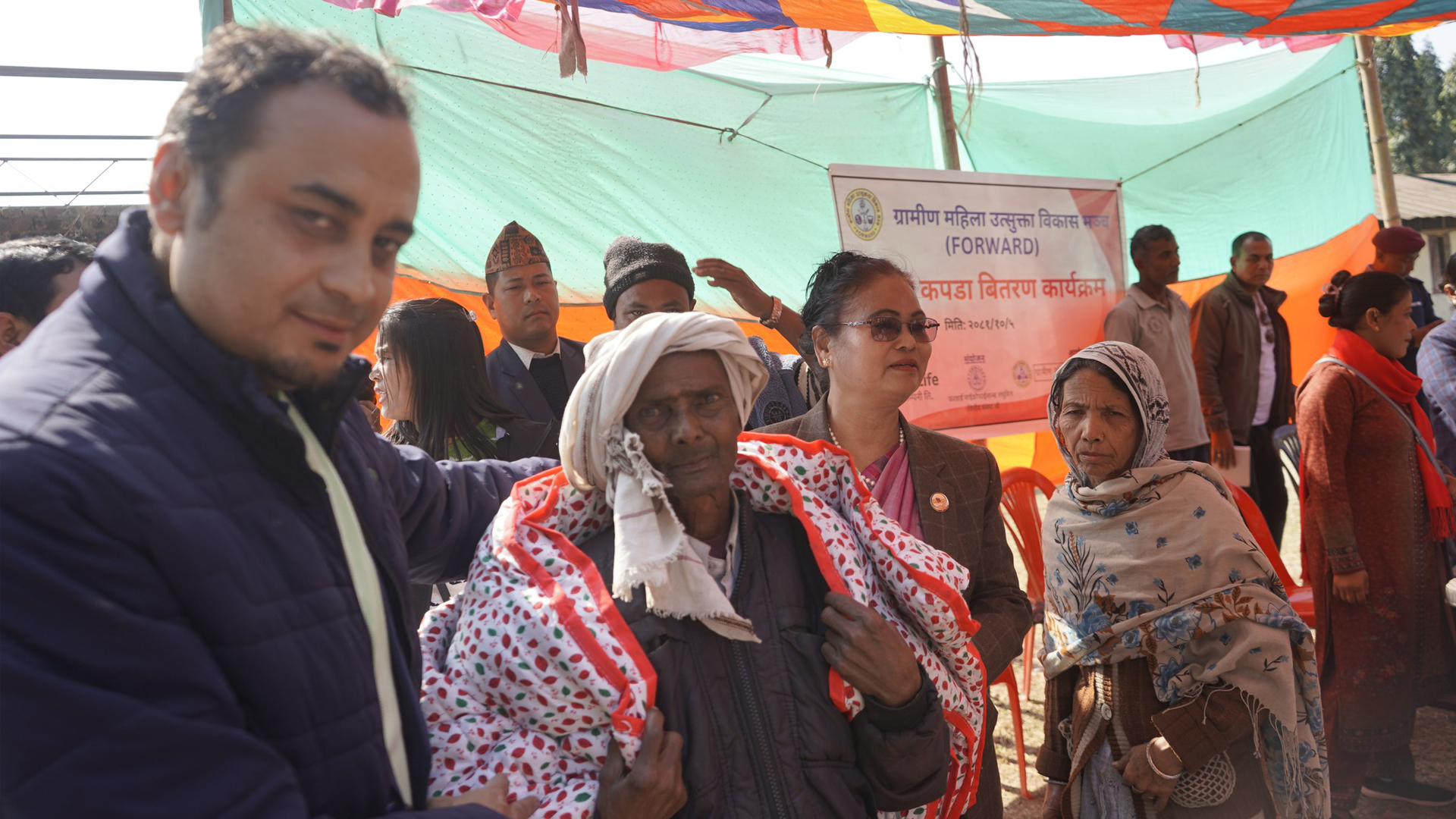 फरवार्ड माइक्रोफाइनान्स लघुवित्त वित्तीय संस्थाले संयोजन गरेको कार्यक्रममा पूर्वमहिला, बालबालिका तथा ज्येष्ठ नागरिकमन्त्री तथा बहालावाला सांसद भगवती चौधरी तथा मेटलाइफ नेपालका प्रतिनिधि निराजन बुुढाथोकीले न्यानो कपडा वितरण गरे ।