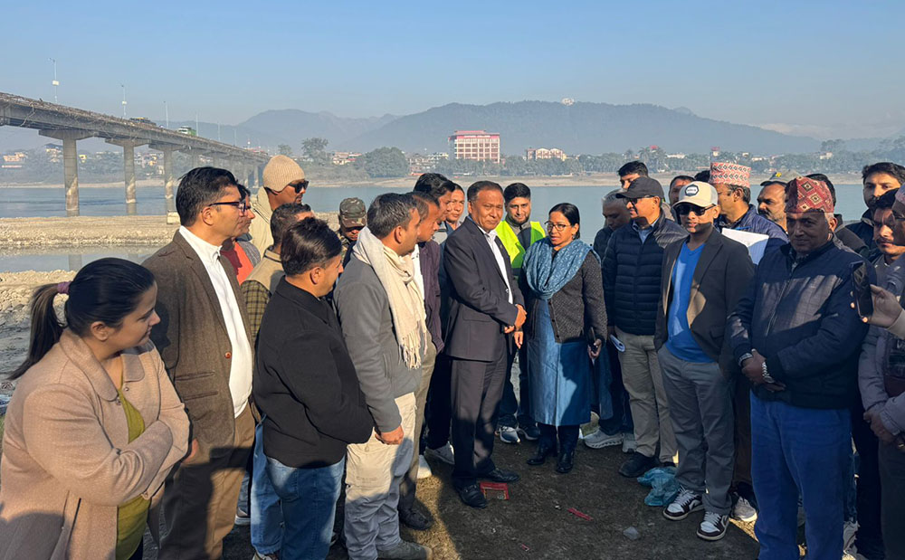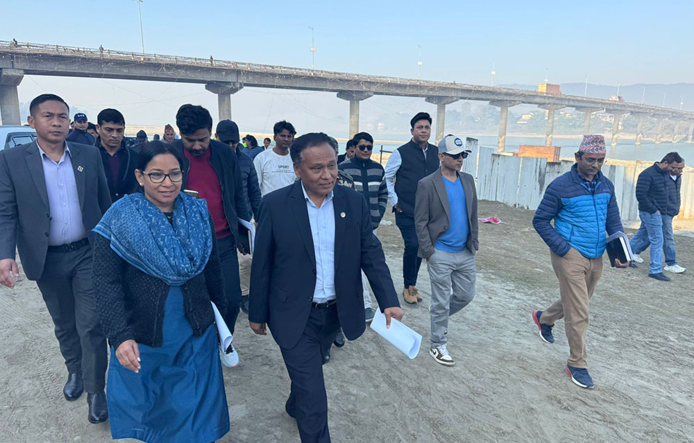 चितवन । मन्त्री कुलमान घिसिङले शनिबार बिहान नारायणी नदीमा निर्माण सुरु भएको सिग्नेचर ब्रीजको निरीक्षण गरेका छन् ।