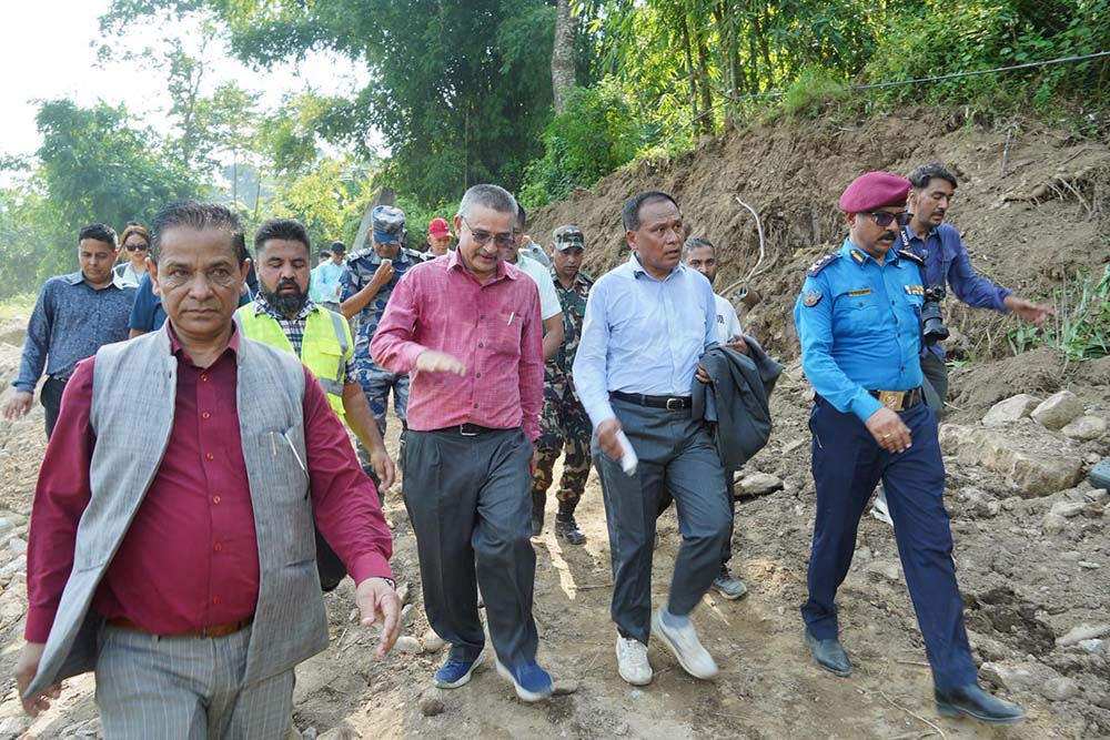 गत असोज १७, १८ र १९ गते परेको भिषण वर्षाको कारण क्षति भएको मेची राजमार्ग अन्र्तगतका विभिन्न खण्डहरुको निरिक्षण गर्दै मन्त्री कुलमान घिसिङले जतिसक्दा छिटो राजमार्गलाई सुचारु गर्ने गरी सडक मर्मत तथा पुन: निर्माणको कार्य भईरहेको बताउनु भयो ।