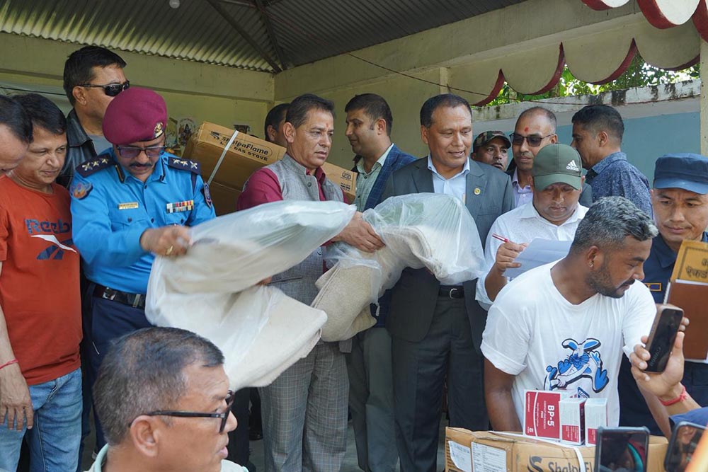 मन्त्री संगै गृह सचिव रामेश्वर दंगाल, भौतिक पूर्वाधार तथा यातायात सचिव केशव कुमार शर्मा, नेपाल प्रहरीका महानिरिक्षक चन्द्र कुबेर खापुङ्ग लगायतको टालीले प्रभावित क्षेत्रहरुको निरिक्षण एवम् प्रभावितलाई राहत वितरण गरेको थियो ।