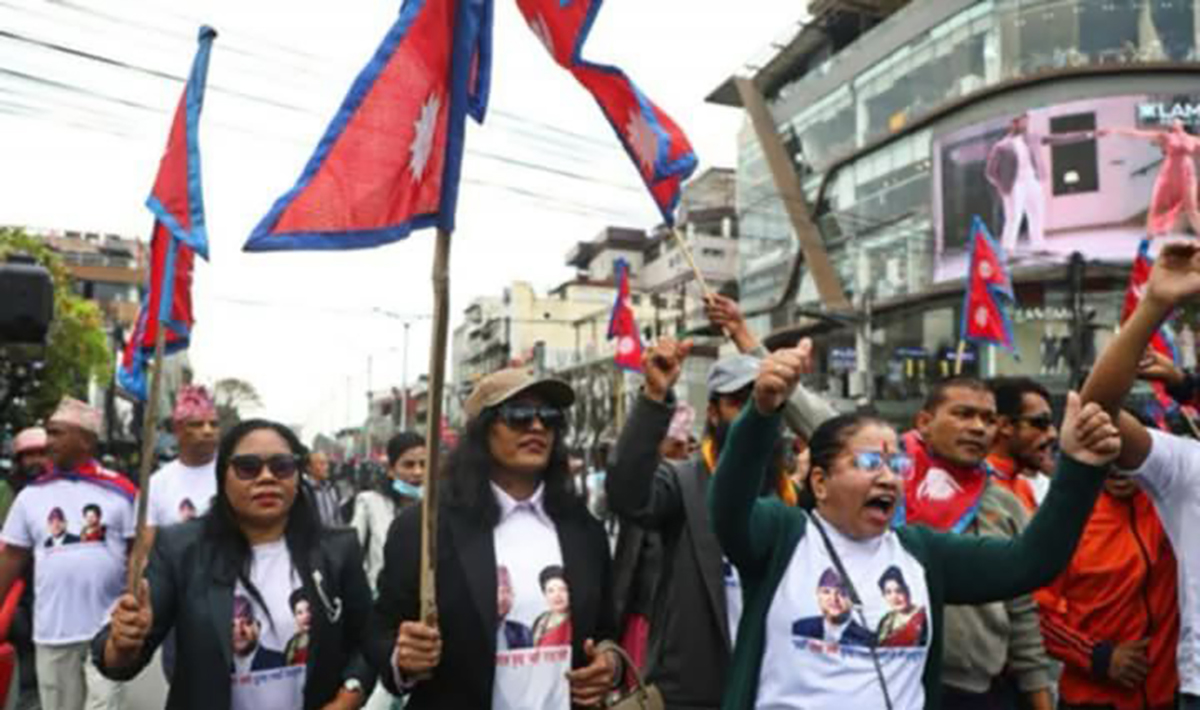 काठमाडौँ । राजसंस्था समर्थकहरूले कामठाडौँमा दोस्रो पटक प्रदर्शन गरेका छन् । उनीहरूले फागुन २५ पछि आज शनिबार काठमाडौँमा फेरि र्याली निकालेका हुन् ।