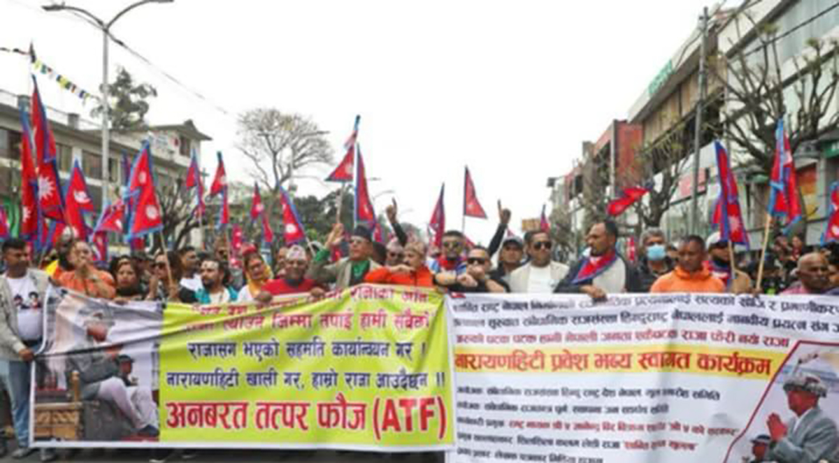 र्याली नारायणहिटी राजदरबारअगाडि पुगेर कोणसभामा परिणत भएको सन्तोष राजावादीले जानकारी दिए ।