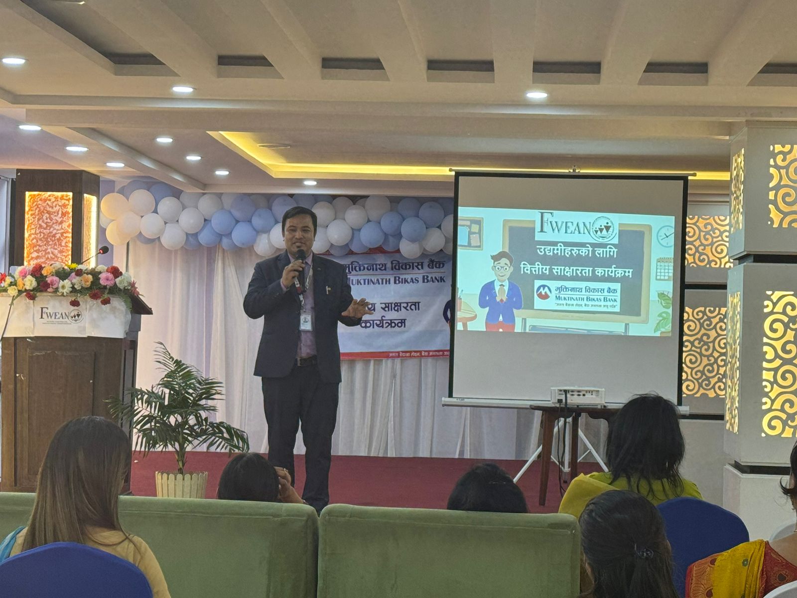काठमाडौं । मुक्तिनाथ विकास बैंकले नेपाल महिला उद्यमी महासंघको २१औं वार्षिक साधारण सभाको अवसरमा महासंघमा आबद्ध महिला उद्यमीहरूका लागि वित्तीय साक्षारता कार्यक्रम सञ्चालन गरेको छ ।