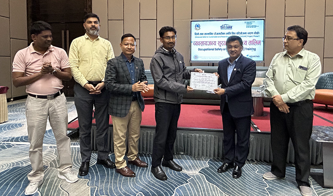 इन्स्योर परियोजनासँगको सहकार्यमा आयोजना गरिएको ‘अकुपेसनल सेफ्टी एण्ड हेल्थ– ओएसएच’सम्बन्धी तालिममा नाडाका १२ सदस्य कम्पनीहरूबाट २० जना प्रशिक्षार्थीहरूले सहभागिता जनाएको नाडाले जनाएको छ । विभिन्न प्राविधिक पृष्ठभूमिका व्यक्तिहरू सहभागी सो तालिममा जोखिम व्यवस्थापनलगायत कार्यस्थलका जोखिमहरू, त्यसको रोकथामका रणनीतिहरू र अटोमोबाइल उद्योगमा सुरक्षा संस्कृतिहरूका सम्बन्धमा जानकारीहरू प्रदान गरिएको थियो ।