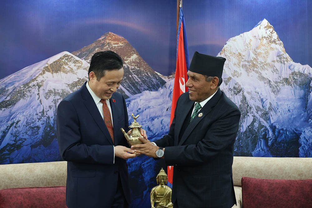 काठमाडौँ । राष्ट्रिय सभाका अध्यक्ष नारायण प्रसाद दाहालसँग नेपालका लागि नवनियुक्त चिनियाँ राजदूत चाङ माओमिङले शिष्टाचार भेट गरेका छन् ।