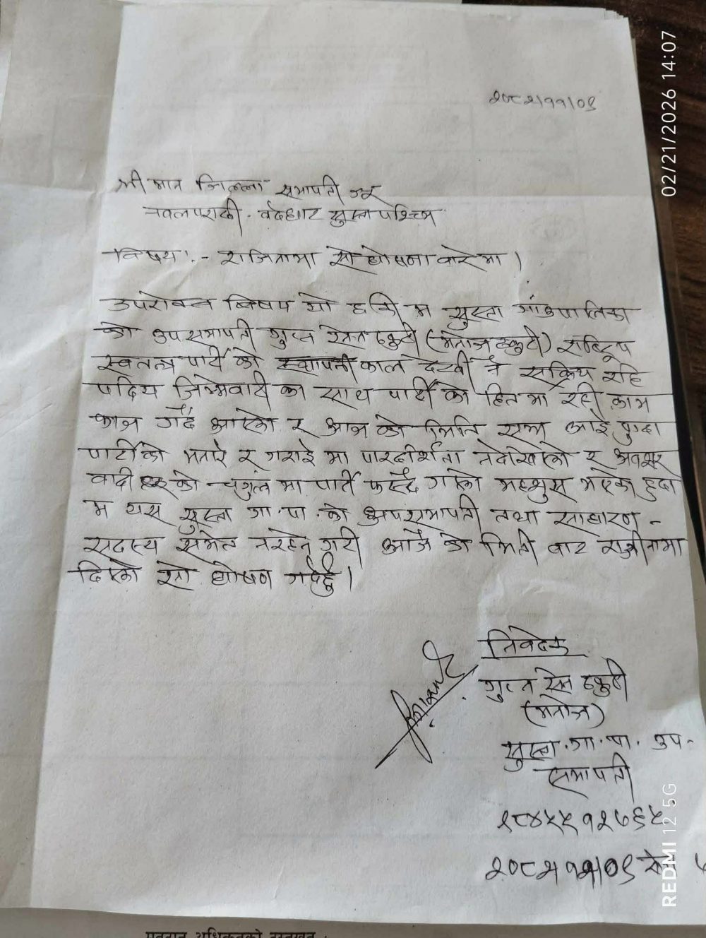 रूपन्देही । पश्चिम नवलपरासको रास्वपा सुस्ता गाउँपालिका उपसभापति गुप्त सेन ठकुरीले पार्टी परित्याग गरेका छन् ।
