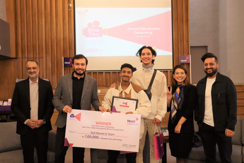 काठमाडौं । एनसेल आजियाटा लिमिटेडले तिहार अघि भाइटीकालाई लक्षित गरि आयोजना गरेको एनसेल लघु चलचित्र प्रतियोगिताको विजेताहरुलाई सम्मान गरेको छ । मंगलबार एनसेल आइकन लैनचौरमा आयोजित विशेष समारोहमा भाइटीका थिममा आयोजित यस प्रतियोगिताका विजेताहरुलाई पुरस्कार प्रदान गरिएको छ ।