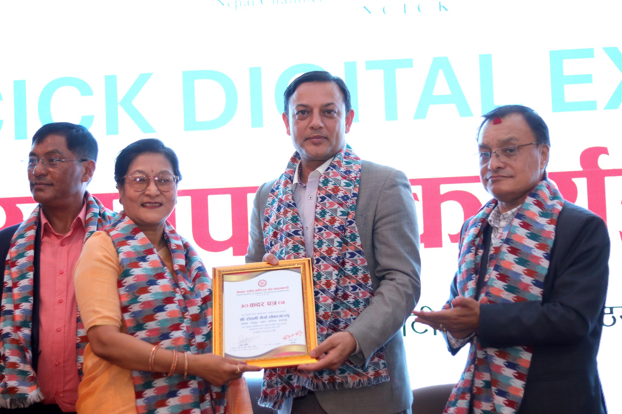 कार्यक्रममा डिजिटल एक्सपोलाई विभिन्न क्षेत्रबाट सहयोग पुर्याउनेहरू, रवीन्द्र श्रेष्ठ, संगीता खत्री, माधव मुल्मी, सञ्जीव लामा, कार्यसमिति सदस्यद्वय फुपुतेञ्जिङ शेर्पा र प्रेमहरि मैनालीलाई प्रशंसापत्रले सम्मान गरिएको थियो । यस्तै, मेलालाई प्रायोजन गर्ने प्रायोजकहरू अशोका कार्वन, श्रेष्ठ एण्ड इन्ड्रष्टीज, रिद्धिसिद्धि, ज्वेलर्स, मैनाली इन्ड्रष्टी प्रालि, श्रीनाथ कलेक्सन, फेसियल हाउस, सगरमाथा लुम्बिनी इन्स्योरेन्स लिमिटेड, एनएमबि बैंकलगायतलाई कदरपत्रद्वारा सम्मान गरिएको थियो ।